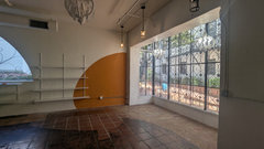 Rooms within a room, partial walls, fabric dividers and open shelves create privacy and intimacy while keeping the connection