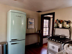 Tall vintage fridge in small low kitchen