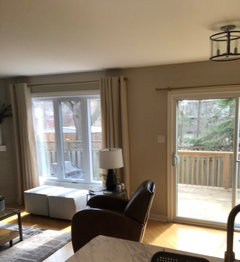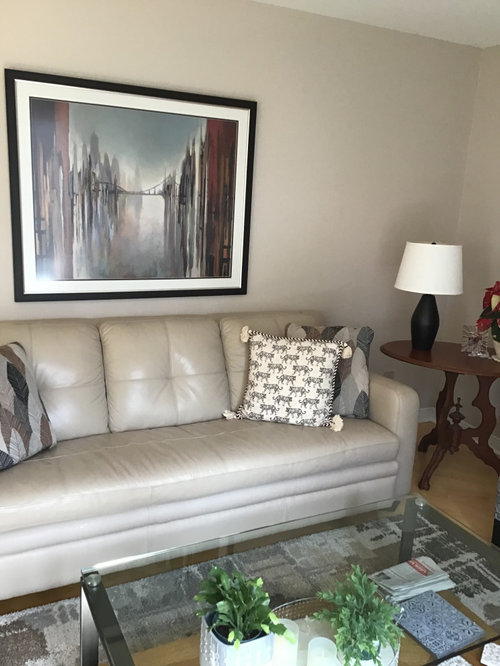 Smaller, more proportionally fitting furniture, a cooler paint color and better window treatments help bring life to a limiting layout