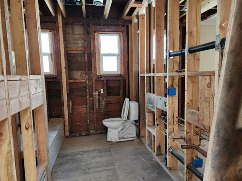 A design-build team found on Houzz gives a couple a stylish new bathroom that they don’t have to share with the kids