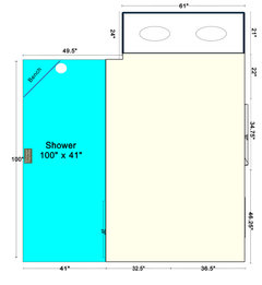 @kitchenremodelhelp Thanks! I just saw the second shower head so never mind my comment about the bench. It obviously wouldnt fit. I think for two shower heads, this is a good size. Do you think you could bump the wall towards the bedroom 6” so you could get a 30” pocket door to the wc? - 9 months ago