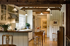 Clean, contemporary lines combine with handmade finishes and colorful touches in a renovated New Jersey kitchen