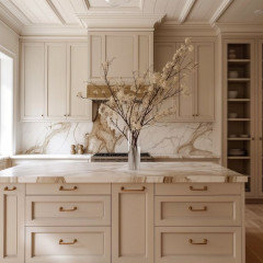 See how pros play with tones for cabinets, countertops and other elements to create luxuriously layered looks