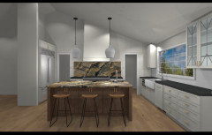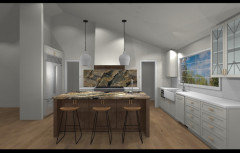 match island countertop and kitchen sink wall