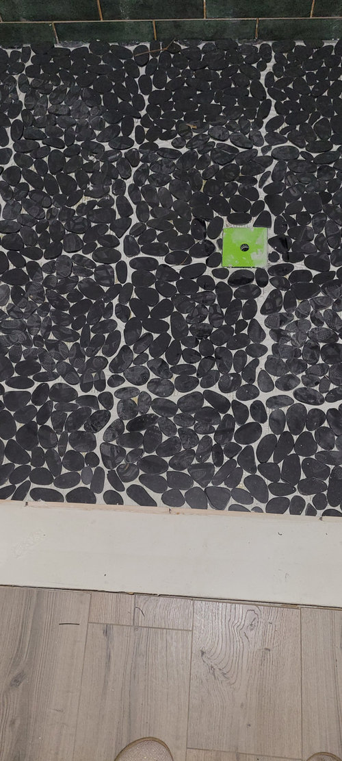 River rock shower floor install issue