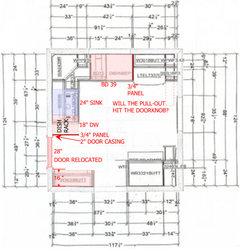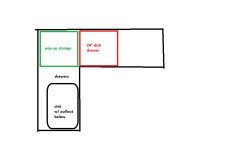 I realize there are very few degrees of freedom here, but having the DW in the prep/cook zone with a drippy path to the sink bugs me a little. I would noodle if the DW can be moved closer to the sink. Makes the blind corner even blinder, but I hate those spaces no matter what rotating/hinged Rev-A-Whatever gizmo is installed. I was sailing last week and thought about the galley storage in boats, with a section of counter that lifts up with bins below.