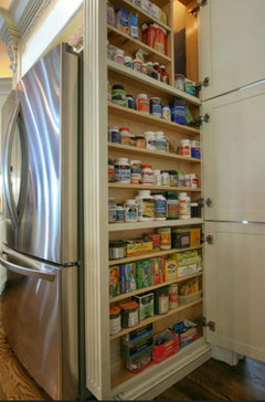 - GOAL - Maximize storage in this small space. No more running to the basement for overflow kitchen storage! Not safe to run up and down stairs as they age.