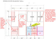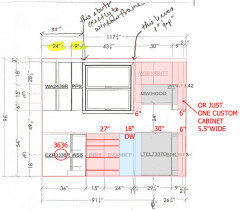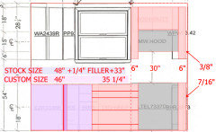 Below, on the wall with the window, there is only 3/8 inch gap between the wall with the back door and the 6" wide wall cabinet to the right of the over-the-range microwave. Could the cabinets just fit? Can just one cabinet can be custom? I hope a small cabinet like that does not cost so much. Perhaps removing the lath and plaster, then installing drywall allows for another inch.