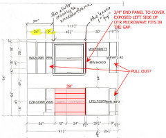 Original Author3 months agoNot sure I am following the ratinale for two 6" cabinets on either side of microwave instead of having a 9" on the right. Is it just for balancing out the look of the microwave so it is sandwiched in between two cabinets?
