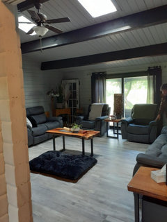 Painting tongue and groove log home