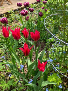 i always plant a tulip bed for my daughter whose birthday is May 19. Sometimes the timing is off, but i think Darwins sychronize well. Tulips planted elsewhere are decapitated by squirrels who leave the flower lying on the ground. I’d be less offended if they just ate the the evidence.