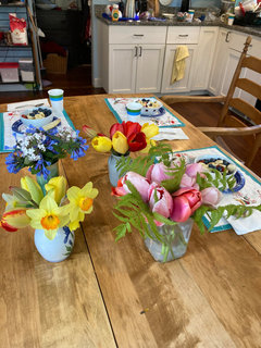 Marie, That is a great idea to do wtih your daughter when she comes for a visit. I bet she gets a lot of enjoyment out of it. And the vases of tulips are so cheerful! Good job! And must be fun to pick new tulip bulbs every season. You get to try a lot of varieties.