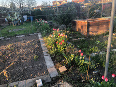 Linaria - Nice display of tulips. And I like your nice large veggie bed edged with pavers. Nice size for squash and anything really.