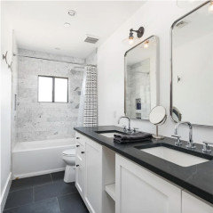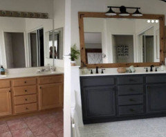 BATHROOM MAKEOVERSGet Ideas From This Budget-Friendly Black-and-White Bath