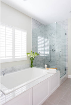 A designer helps a Chicago condo owner lighten her dark master bath with an updated layout and a fresh, clean look