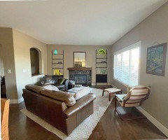 Looking to capitalize on views of mountains and a lake, this family creates a clean-looking space for relaxation and reflection