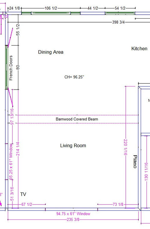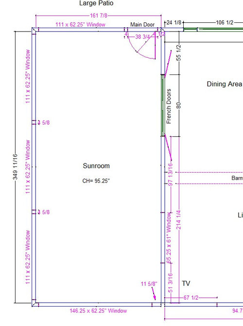 I think what they are trying to say is that you have given a lot of information, but we are missing the main ”ingredient” which is a sketch of the main floor plan with measurements labeled for walls, doorways including trim, windows including trim, etc…
