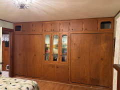 Those built in cabinets are great. The dresser matches the wood on the door so well that you could insert a mirror between the door trim and it would look like it was a connected part of the dresser.