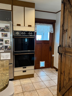 Original Author29 days ago@rebunky I do love your creativity. You have a good idea and if we didn't have such beautiful views from the large living room window, I would highly consider it. I'd have to shrink the living room window a lot to put cabinets under it since it is only 24 3/8" above the floor and then move all the plumbing and gas lines. I have no idea what I would use the current kitchen space for. Once I get a chance to take pictures and post them here it'll help you see how beautifully the whole downstairs layout flows. I know the walkways are narrow, but it really does not feel tight as we move around. Believe it or not, I have the kitchen floor plans and 3D renderings from 1984. I do not have the whole addition's plans. An actual kitchen design company created it and had the European-style laminate cabinets shipped from Germany. Previous owners removed the upper cabinets that were above our peninsula to open it up more, which I like. I just wish they were paintable cabinets with regular hardware because I would totally repaint them, update the hardware, change the flooring, and be happy.