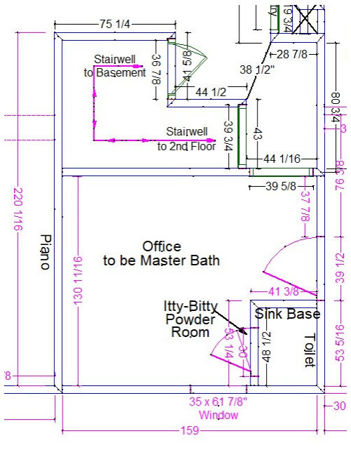 **EDIT: Requested entire 1st Floor Plan and DIMS have been added in pink! (Seems like overkill, but I think I provided everything one could want, other than physical photos which I can provide.)**
