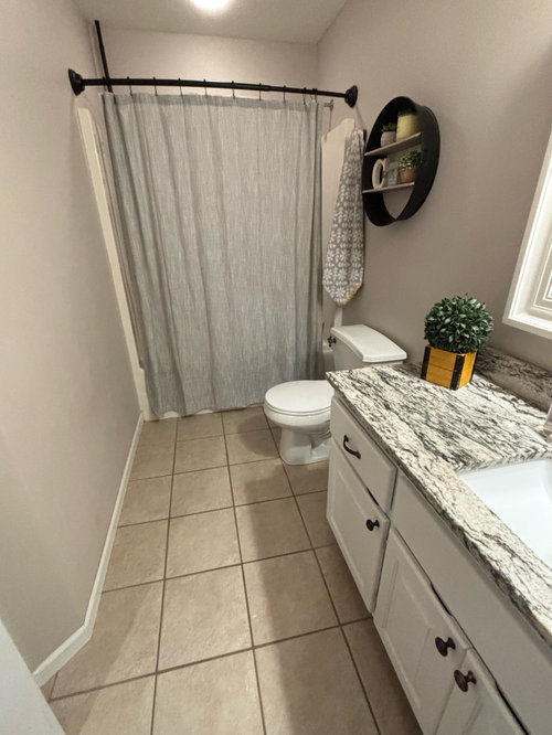 BATHROOM MAKEOVERSRoom of the Day: Bathroom Embraces an Unusual Floor Plan