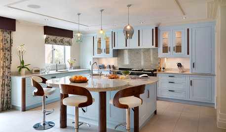Get ideas for island seating and lighting looks to combine in your kitchen