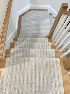 Energize your stairway with a carpet runner decked in stripes to go the distance