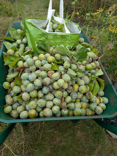 I also have to say I do no work to get crops like the one in my photo. The tree has never been pruned or sprayed. It might have benefited from a bit of shaping since it split this year from the weight of the fruit. But pruning plums increases the chances of disease.