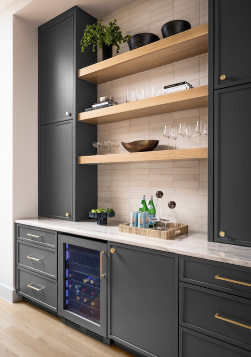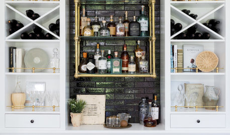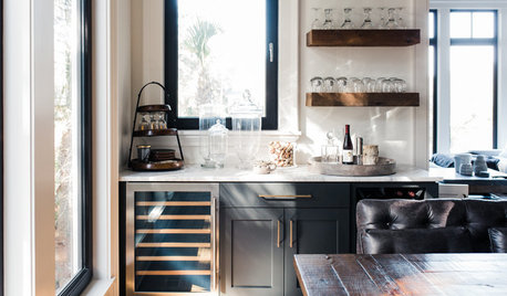 Sleek finishes, gorgeous lighting and farmhouse touches serve up a fresh round of ideas for home beverage hubs