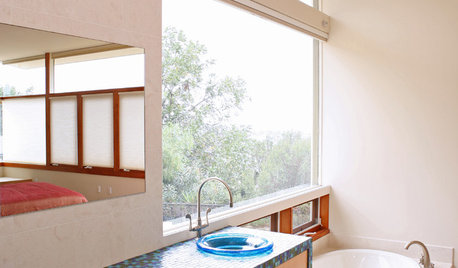Modern and open goes cozy with sunken tubs, dropped ceilings, well-placed furniture placement and fabric
