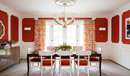 Bold reds and unexpected furniture pairings give a Hillsborough dining room an energetic edge