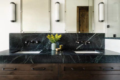 BATHROOM DESIGNBathroom of the Week: Dark Cabinets, Shimmery Tile and Seating