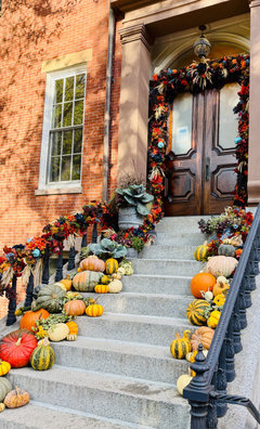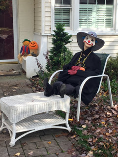She decorates a lot for Halloween - both outside and inside her house! Not creepy/scary stuff (she has a three year old + a nine month old). The past three Halloweens, her and her husband dress up to coordinate with whatever my grandson is dressed as for Halloween. It's pretty cute.