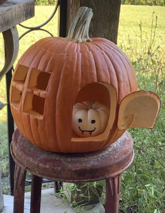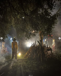 It’s lit up at night and the kids love it.We have other decor scattered around and every year DH carves a ”house” with a little vampire pumpkin in it. There’s a little machine inside with a strobe light and fun scary noises. Nearly every trick or treater comments in awe of it. :) I wish I could post a video here.