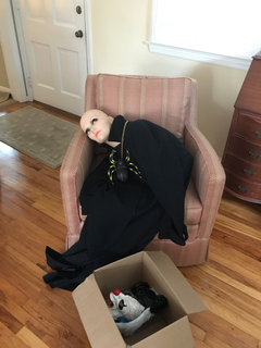 This house is a few blocks from me and on my walking route. A couple of weeks ago, a mid sized u-haul was parked near it for a few days. It was funny to see all the zombies standing around in a tight circle outside the truck door waiting to be placed in their spots.