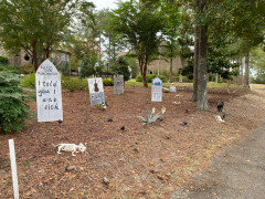 Halloween is a big deal around here, especially on my street. Some of the neighbors with young kids go all out. Honestly most of it is not clever, just excessive. My neighbors have about seven inflatable things, lights, spiders, the whole magillah. Same thing across the street.