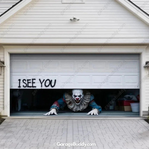 If that clown showed up on a garage door near my DD, she would move! She sbsolutely is creeped out by clowns and always has been. We don’t know what triggered her reaction to them, but her reading Stephen King’s ’It’ didn’t help. Fortunately her neighborhood is a kid-friendly family magnet and people decorate accordingly. Anything done with skeletons and such is clever and funny, not at all creepy.