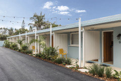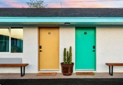 Earthy hues, low-water landscaping and architectural flourishes are characteristic of these homes