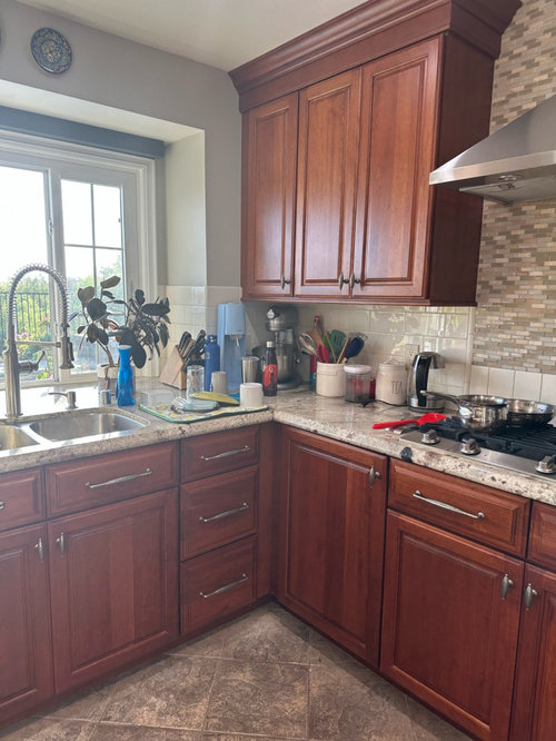 - I'd start by decluttering some of the stuff on your countertops. Would some in-drawer organizers help things move off the countertops?