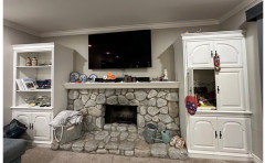 You want a redone fire wall, where the first fix is to tear those " built ins", right off the wall!!The fire box is too small, the mantel should be anything but white, the tv is nearly at the ceiling and IF you could have anything, what would you want it to look like? Bigger fire? Linear fire? Keep the rocks? Get rid of the rocks?