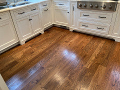 White oak solid hardwood, site-finished, in kitchen after 14 years of use:
