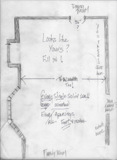 Then, take a piece of paper, draw a picture of the room and put measurements on the picture for each wall, window, etc. Make sure the writing is dark and legible. Look at Jan's sketches - that's all you have to do.