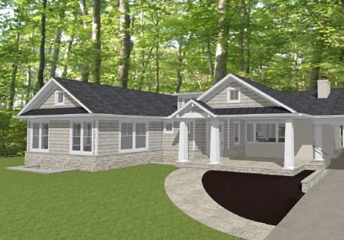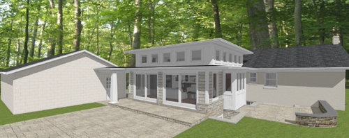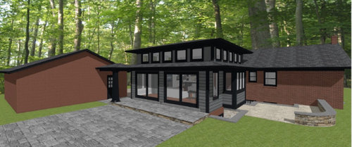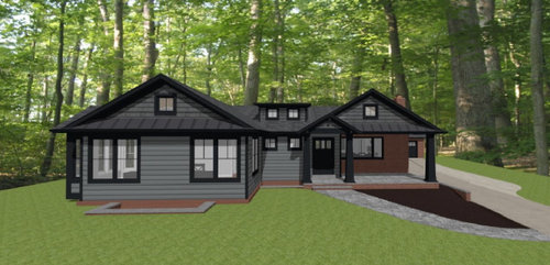 Exterior color palette for red brick rambler addition