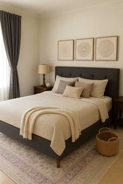Rest assured that these soft shades will create a relaxing feel, while textures and patterns ensure a bedroom that's no snoozefest