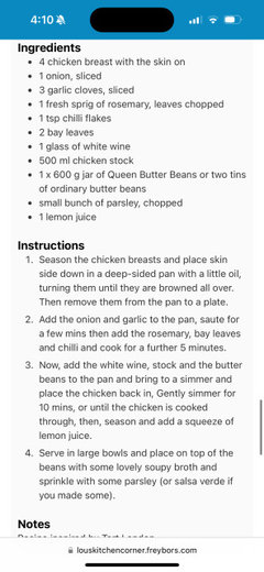 Found the link - Ckicken in creamy beans