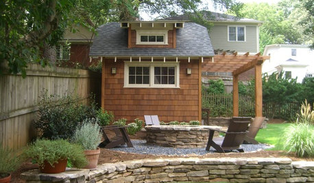 An Atlanta storage shed borrows details from the main house while still looking distinct