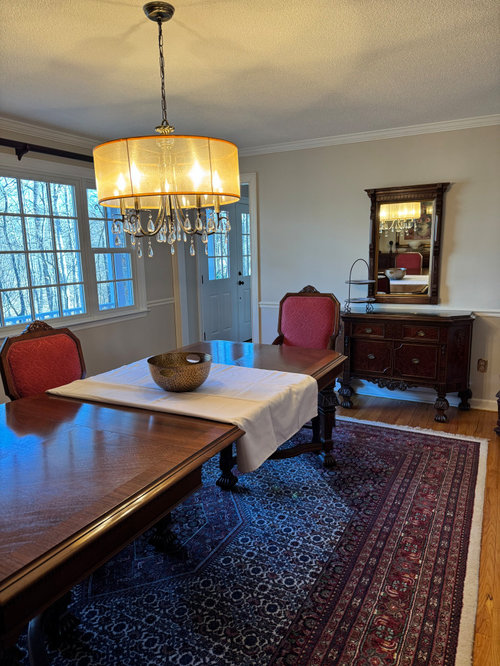 Would love suggestions on a replacement mirror & rug for dining room.
