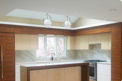 Smart storage, extra countertop space and soft lighting make this kitchen a perfect fit for a designer and her husband