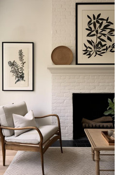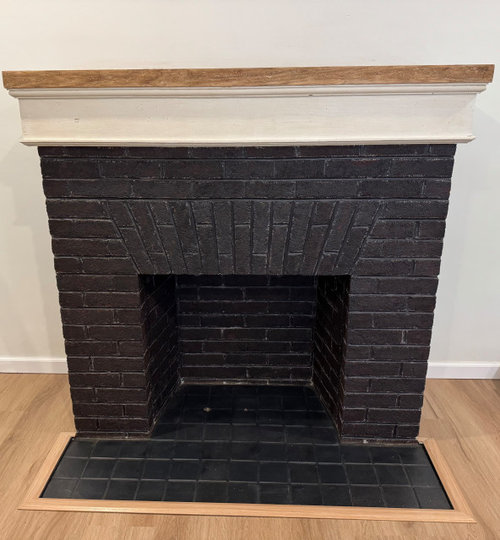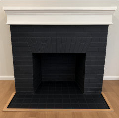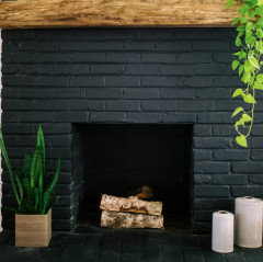 A painted-brick fireplace gets a virtual wash of new color, turning it dark and dramatic or bold and bright