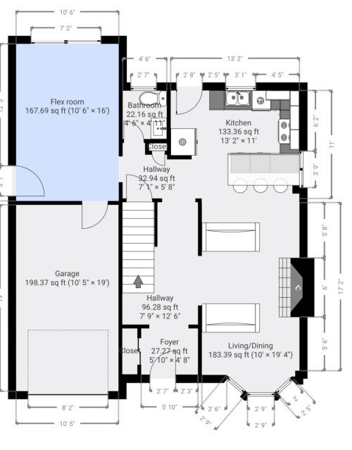 Addition layout (flex room, laundry, dog wash station, pantry)